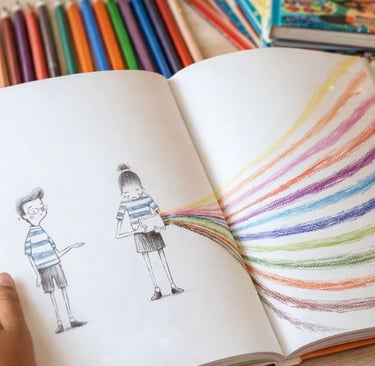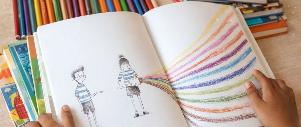 Embora a leitura literária costume aparecer com mais frequência nas aulas de Língua Portuguesa, A Cor de Coraline também dialoga diretamente com a aula de Artes. A ambientação da história remete ao universo da pintura, do desenho, da criação. O livro convida as crianças a olharem para as cores não apenas como algo dado, fixo ou padronizado, mas como possibilidade.